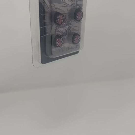 These valve caps are made from durable materials, ensuring protection for your tire valves while adding a unique and eye-catching detail. The intricate, retro-inspired design featuring sakura blossoms, checker patterns, and racing motifs will appeal to anyone looking to add some personality to their car's wheels.