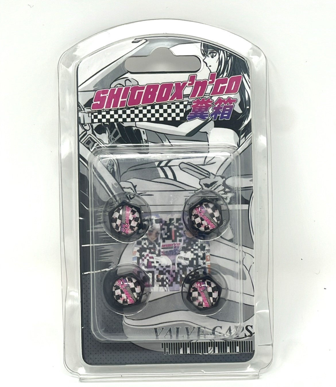 Introducing SHITBOX’n’GO Valve Caps, designed for true JDM enthusiasts and street racers who live and breathe the spirit of customization and automotive culture. These valve caps are the perfect finishing touch for any car, boasting a bold checkerboard design in black, white, and magenta. The "SHITBOX’n’GO" branding in stylish Japanese-inspired typography further enhances the street racing vibe, while the manga art on the packaging reflects the intersection of anime culture and automotive performance.